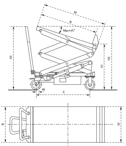台面最小/最大高度 | H1min/H1max (mm) | 500/900 | 500/1000 |